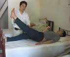 答:上个月,我的一个朋友(48岁的ZH先生)在家时,无意中突然用力弯腰,致使腰椎间盘突出症复发,右下肢剧烈疼痛发麻,无法站立,翻身也很困难。3年前他患过此症,也拍过CT。这次由于突然用力弯腰,又复发了。我赶到他家时,看见他躺在长沙发上,表情痛苦。我为他抬抬腿,简单地检查一下。之后,我把他的下半身向下拖,把他的腰放在沙发扶手上,让下半身向下垂。20分钟后,我叫他自己用双手推沙发,把身体缩回去。第二天早上,他打电话来说,昨天一夜没痛,美美地睡了一夜。我叫他如法继续自己在家治疗,2周后,他的病,被他自己治好了。