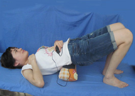(1)仰卧,将浴巾卷起来,垫在腰部下面(大约一个拳头高),