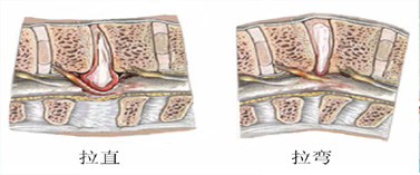 如果用“拉直”牵引或用“电脑机”拉直牵引,则只会把已经突出的椎间盘,越拉越突出。正确的方法是:卧床(腰后)垫枕牵引。